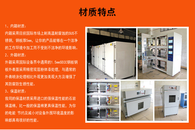 內(nèi)箱采用目前國際市場上耐高溫耐腐蝕的SUS不銹鋼,鋼板厚5mm,讓你的產(chǎn)品能夠在一個潔凈的工作環(huán)境中加工而不受到不潔凈的環(huán)境影響。