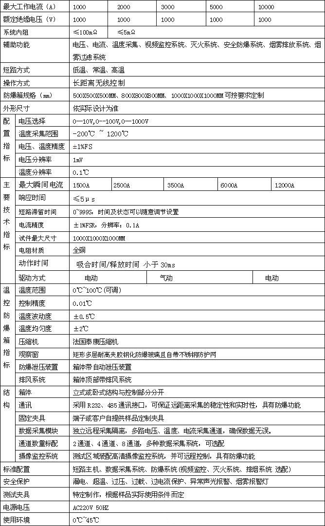遙控大電流短路裝置綜合多種電池短路試驗標(biāo)準(zhǔn)要求而設(shè)計按標(biāo)準(zhǔn)要求短路裝置必須符合內(nèi)阻范圍遠小于100mΩ,從而獲得試驗要求的最大短路電流。